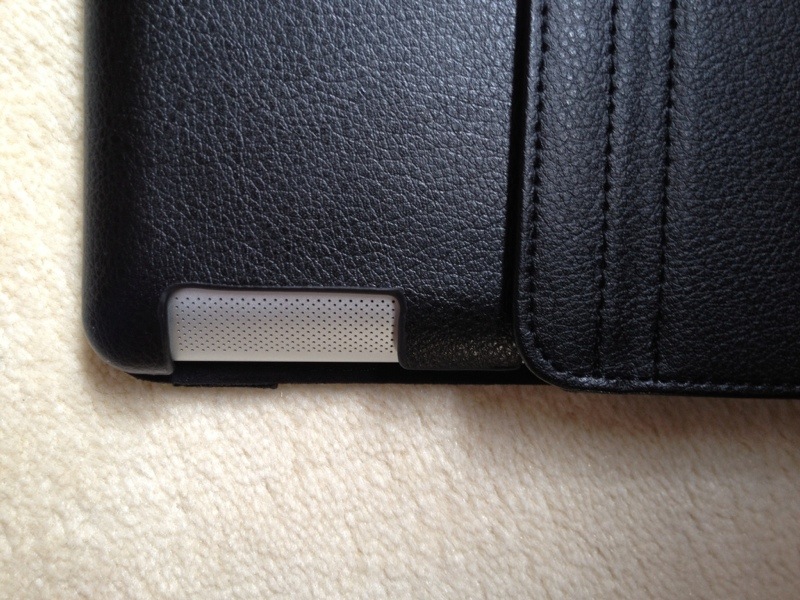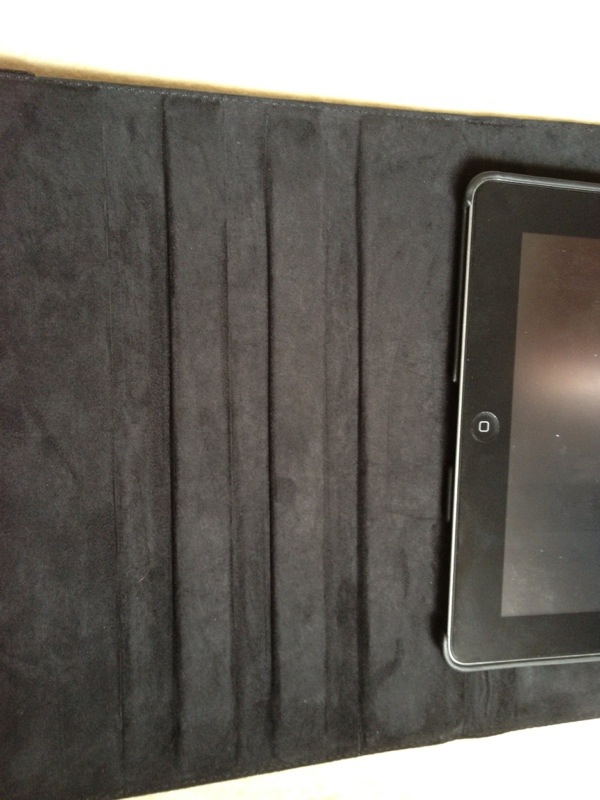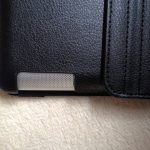 La protection arbore un très beau simili cuir sur l’extérieur et un revêtement en tissu noir à l’intérieur pour protéger l’appareil des rayures. Placer l’iPad dans sa coque est un brin compliqué tant elle épouse ses contours: gage de qualité et de tranquillité à ce niveau. Globalement, l’étui est très bien fini bien que le simili cuir va rapidement se retrouver plisser au niveau du mécanisme de rotation.